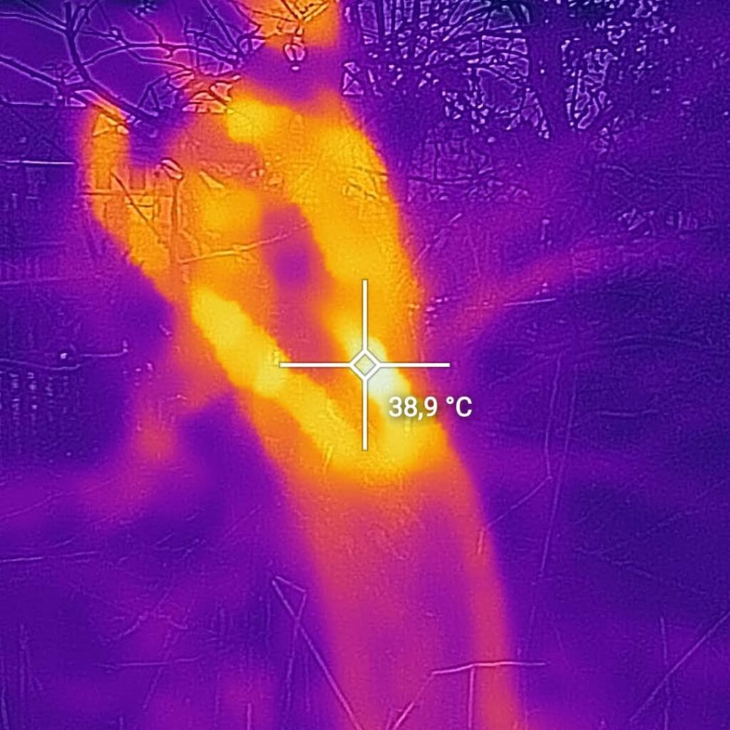 Der Brand wurde mit dem Schnellangriff abgelöscht. Anschließend wurde der Bereich mit einer Wärmebildkamera kontrolliert, um verbliebene Glutnester auszuschließen.